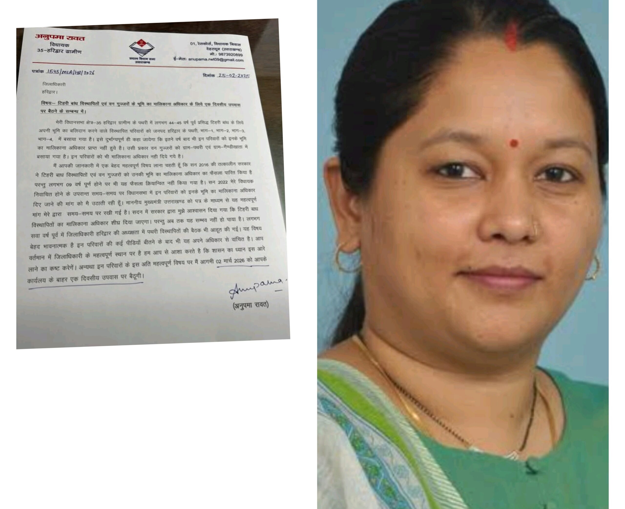 हरिद्वार ग्रामीण। टिहरी बांध विस्थापितों और वन गुज्जर परिवारों को भूमि का मालिकाना अधिकार न मिलने पर अनुपमा रावत ने प्रशासन को सख्त चेतावनी दी…